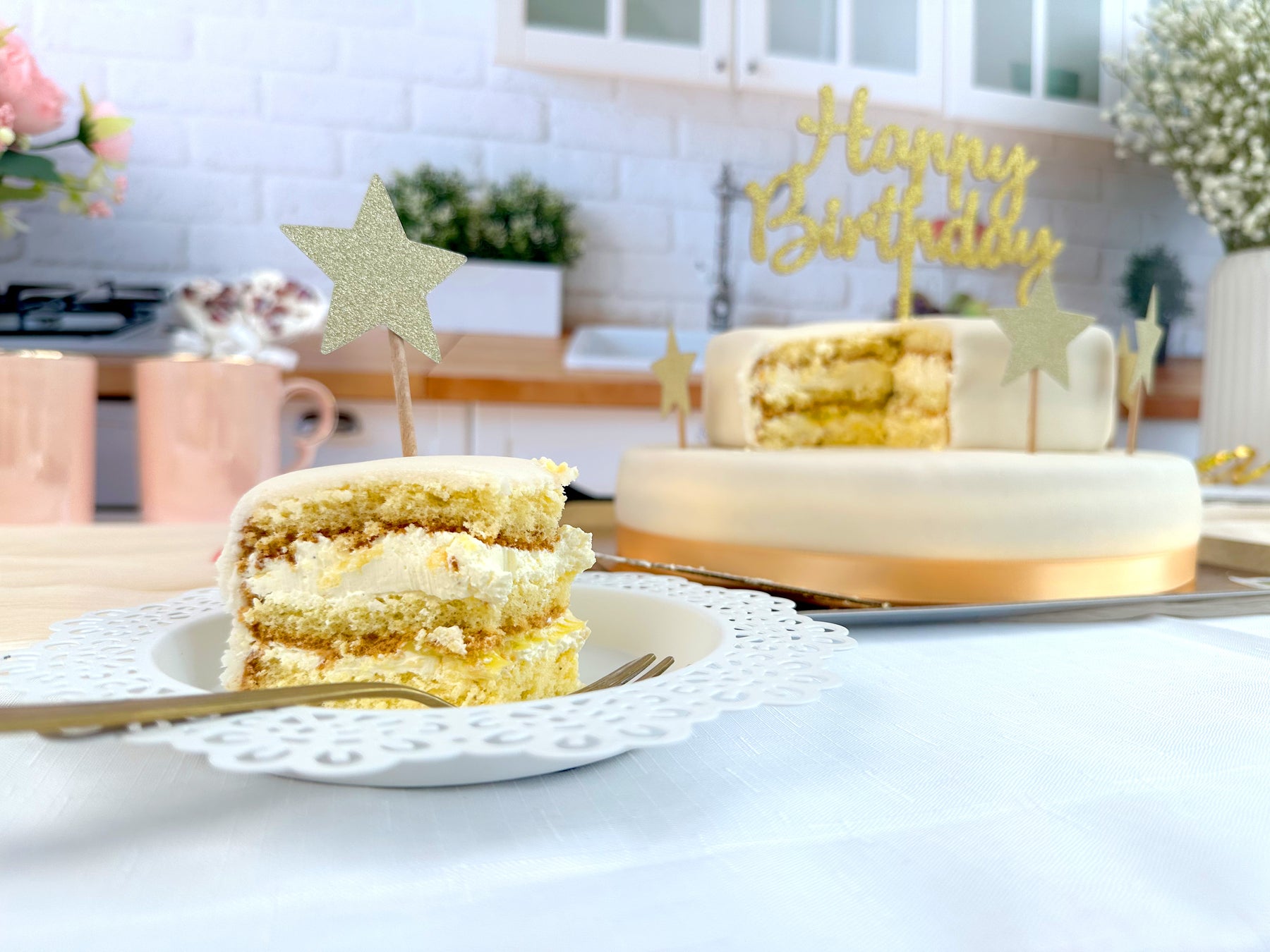 Vanillekuchen mit Pfirsich-Maracujacremefüllung