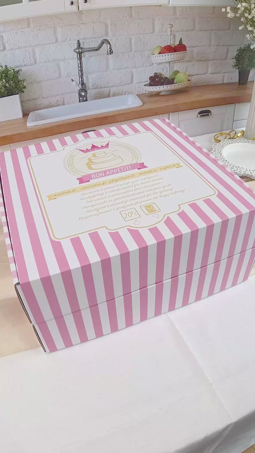 Onze taarten worden elke dag vers gebakken in onze eigen bakkerij in Keulen. We bakken alles zelf en combineren traditioneel vakmanschap met de hoogste kwaliteit en creatieve ontwerpen. Elke taart wordt individueel voor jou gemaakt en handmatig verpakt, waarna deze dezelfde dag nog wordt verzonden, zodat de taart meestal de volgende dag geleverd wordt via DHL Express.