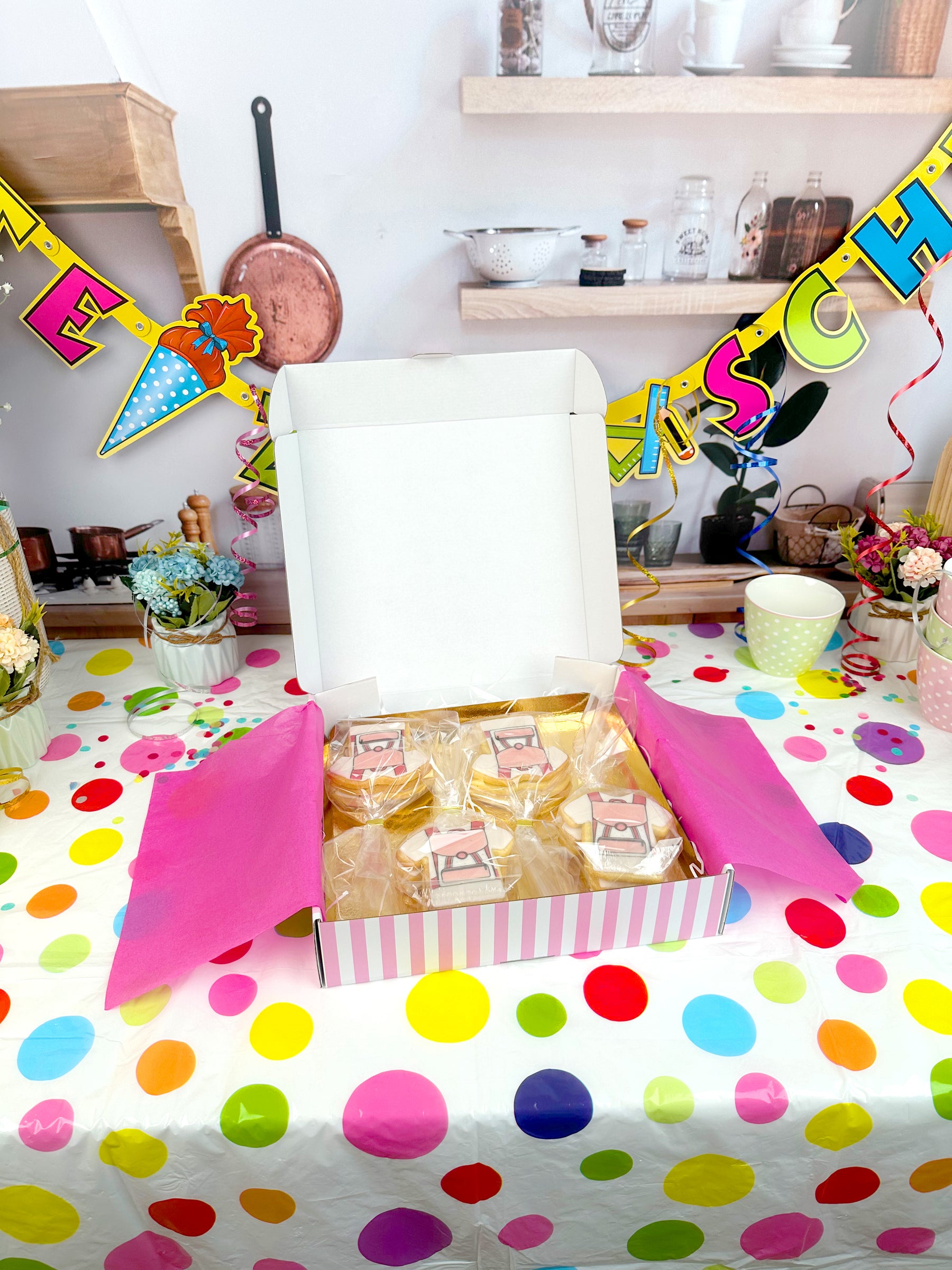 Elk van de twaalf stukken in deze set is zorgvuldig gebakken om perfect te passen bij het eerste verjaardagsfeestje van je prinses. De levendige roze kleur en het gedetailleerde ontwerp maken deze koekjes een geweldige aanvulling op elke tafel. Ze zijn perfect als cadeau of als zoete snack om te delen. De koekjes zijn een charmante en liefdevolle manier om deze belangrijke dag te vieren en de eerste schooldag tot een onvergetelijke ervaring te maken. Bestel nu en laat kinderogen oplichten op de eerste schooldag!