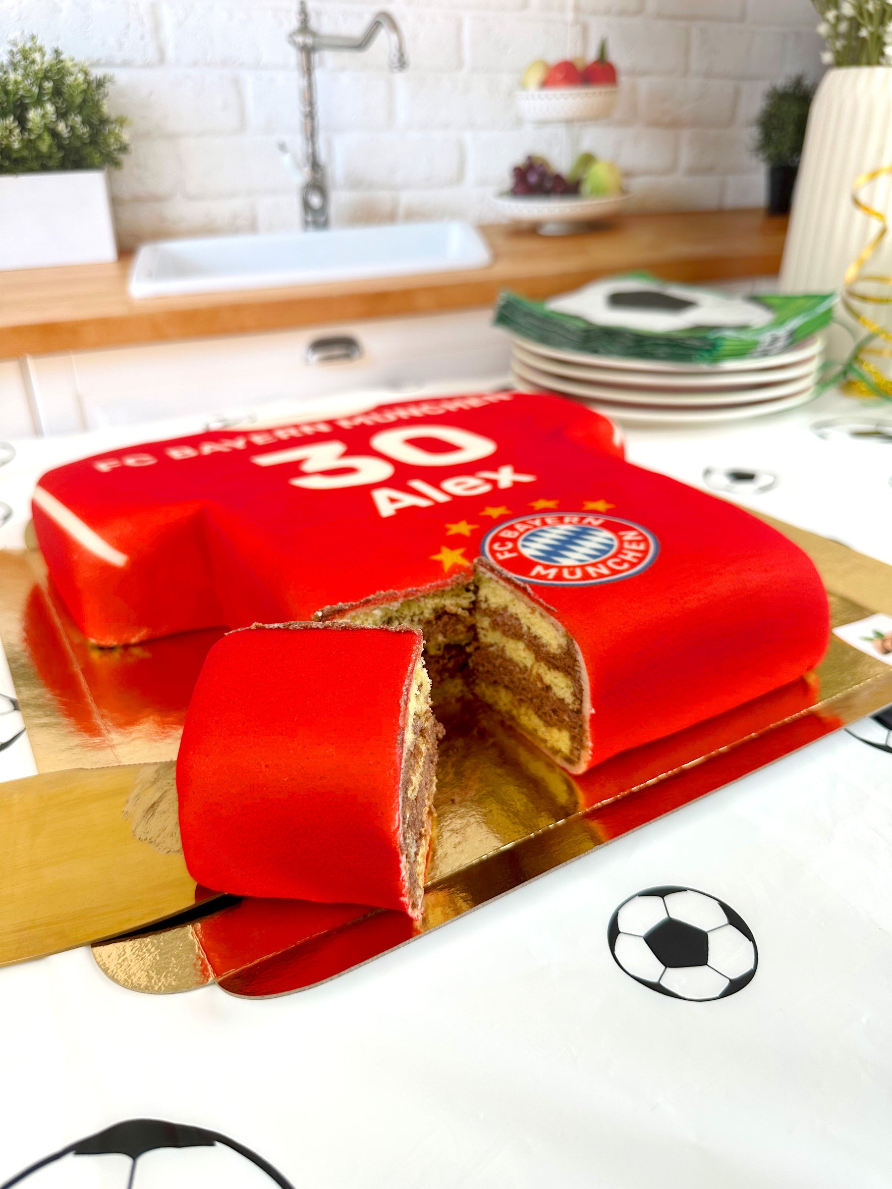 Als je op zoek bent naar een wat klassiekere taart in FC Bayern-stijl, kun je ook nog onze heerlijke FC Bayern München taart met het exclusieve FC Bayern München logo bekijken.