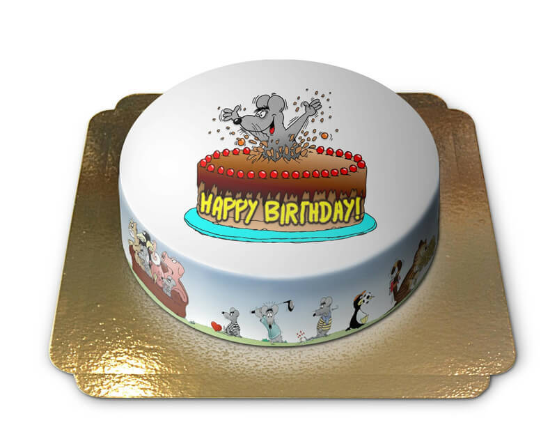 Wil je een vriend, vriendin, familielid of misschien je kind wel verassen met een mooie verjaardagstaart. De taart is heeft een gedrukte muis op de voorkant die een bos bloemen vasthoudt en een taart met een groot hart op de achtergrond. Op de foto staat ook nog een groot hart op de achtergrond geprint. Perfect als de ontvanger van de... Meer weergeven