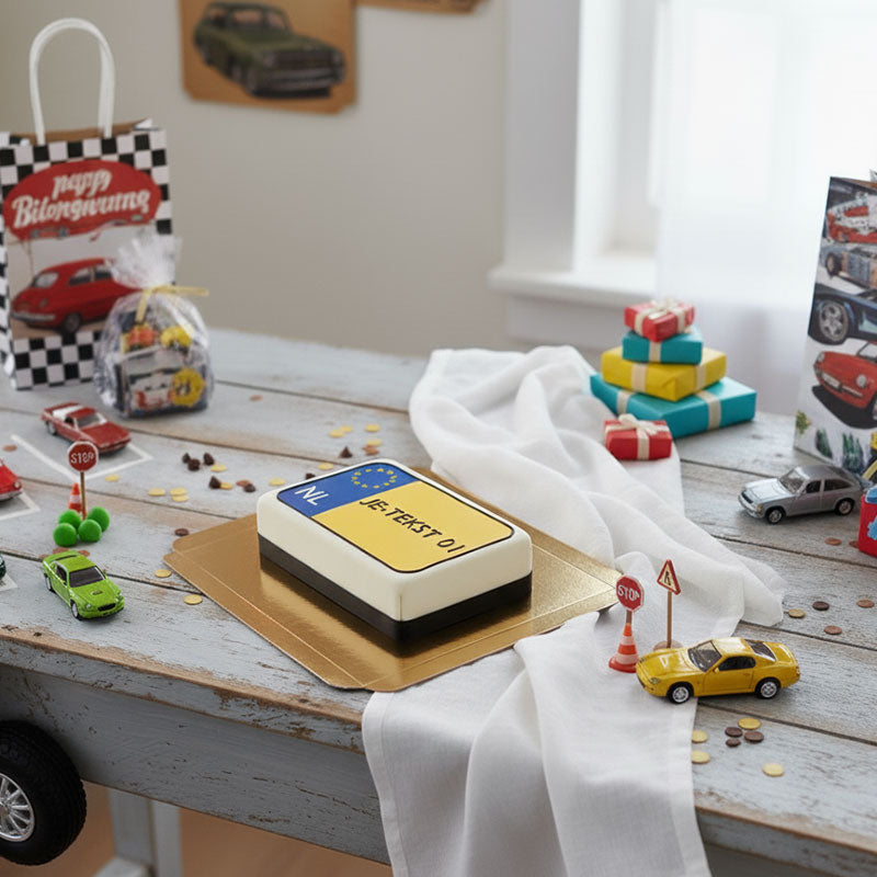 Hier komt de perfecte taart voor autoliefhebbers: onze kenteken taart in de vorm van een Nederlands nummerbord is een echt eye-catcher voor op tafel. Het rechthoekige formaat en de blauwe balk met het logo van de EU maakt deze taart bijzonder realistisch. Het is de perfecte zoete groet voor iedereen die liever aan auto's... Meer weergeven