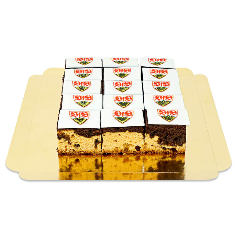 De VfB Stuttgart Taartjes worden gebakken van luchtig marmerdeeg dat smaakt naar chocolade en vanille. Om de VfB Stuttgart Taartjes te onderscheiden van normale Taartjes, plaatsen we een fondant topper op het oppervlak van de VfB Stuttgart Taartjes, die van tevoren is bedrukt met het traditionele VfB Stuttgart logo in rood en wit. Dit maakt de VfB Stuttgart Taartjes een absolute blikvanger en maakt ze ook onmiskenbaar in hun unieke smaak.